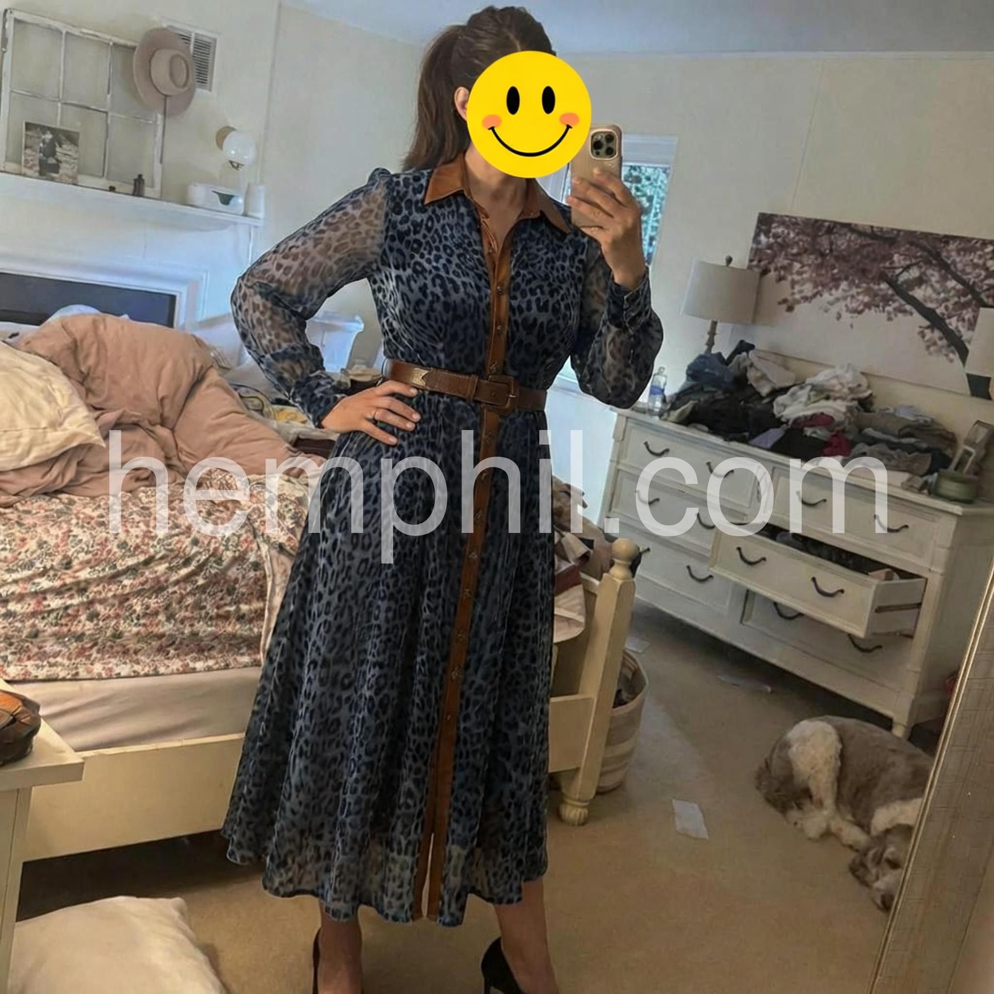 Absolutely stunning dress! The blue leopard print is so unique and sophisticated. I wore it to a dinner party and received so many compliments. The fit is true to size and the belt cinches the waist perfectly.