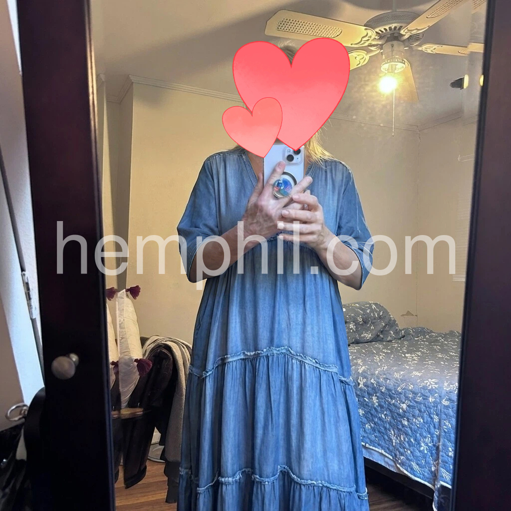 Blue Denim Plain 3/4 Sleeve Maxi Dress