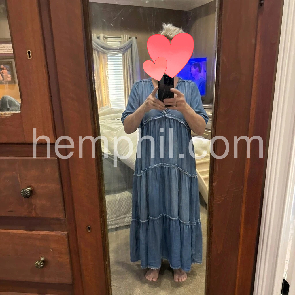 This Blue Denim Plain 3/4 Sleeve Maxi Dress is a must-have for any wardrobe. Its classic design and 3/4 sleeves make it versatile for any occasion. The high-quality denim material ensures durability and comfort, while the plain blue color adds a touch of sophistication. Elevate your style with this timeless piece.